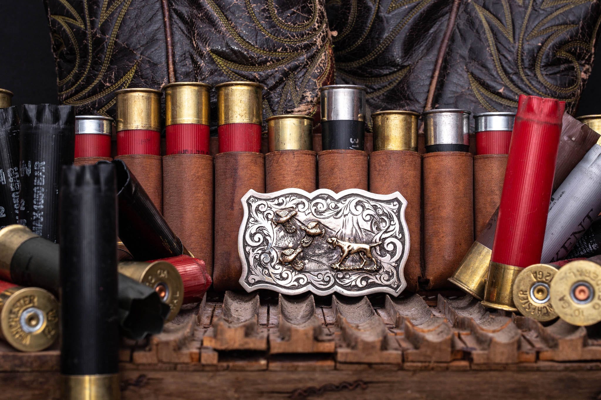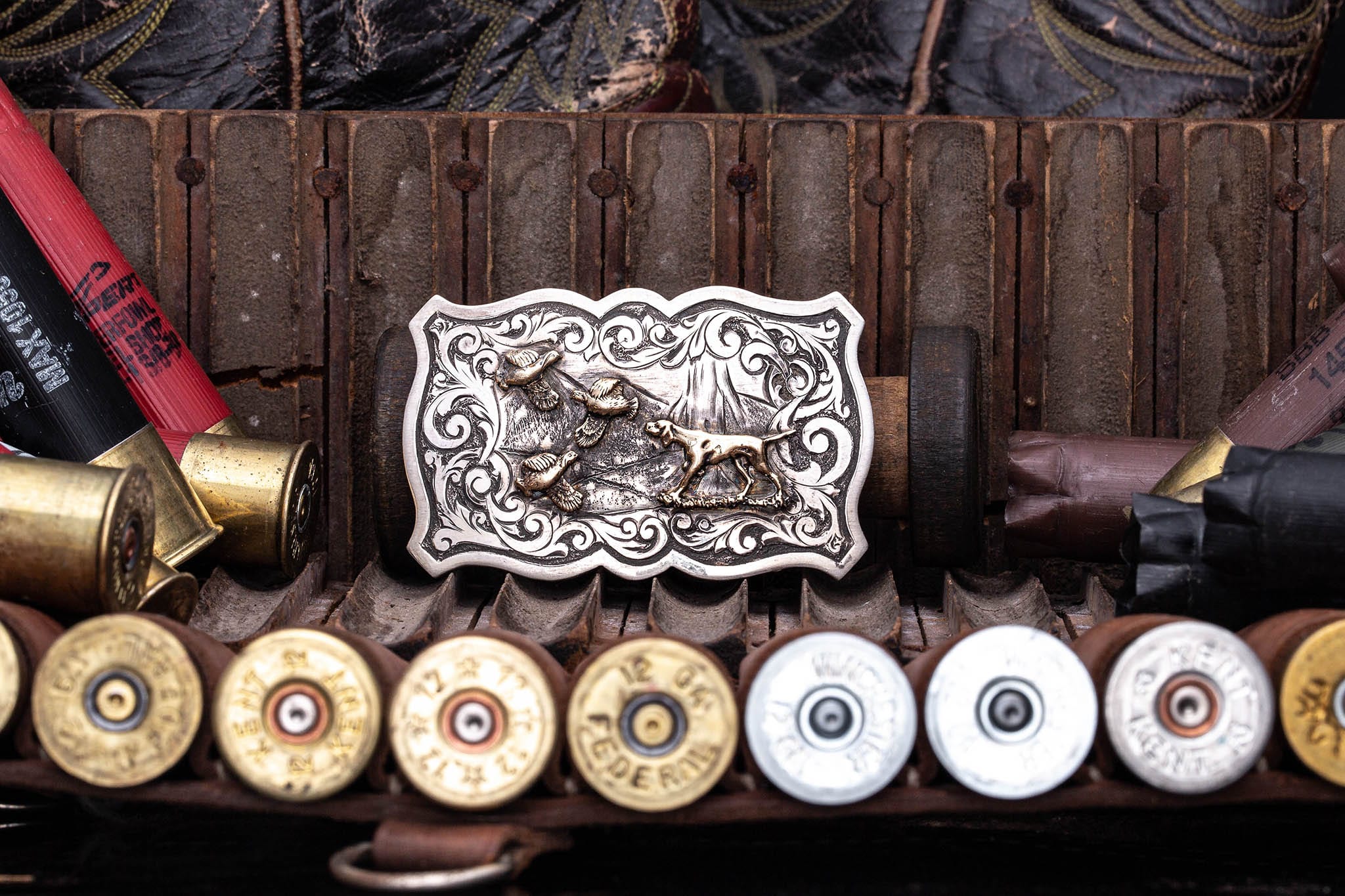 • 14k dog and quail figures