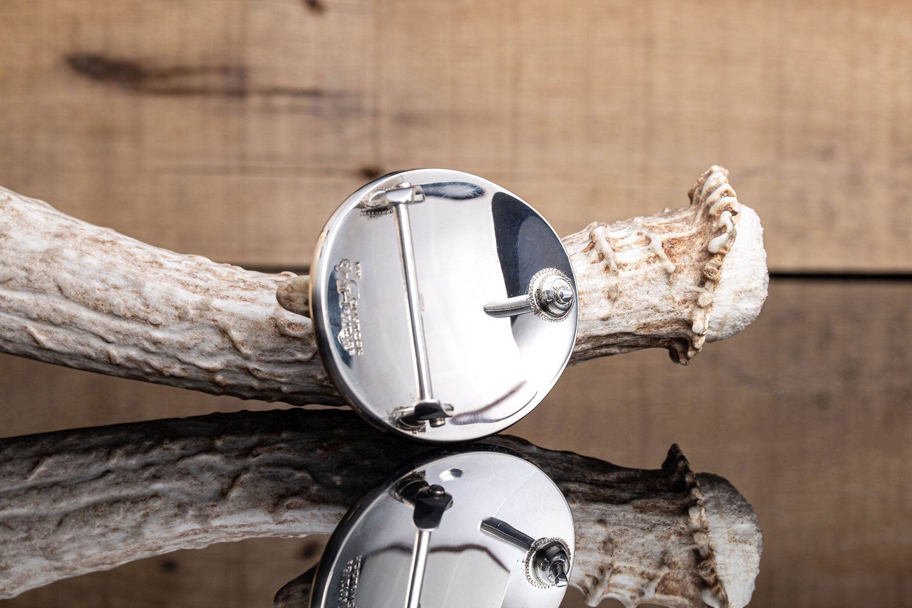 The Sutro Fire buckle is a masterful blend of bold design and fine craftsmanship. Hand-forged in the USA, this oval-shaped buckle features a stunning piece of rare fire agate from Arizona at its center—framed by dimensional scroll motif. Surrounding it all is a hand-wrought 14k rose gold rope edge, adding warmth and contrast to the antiqued sterling background. Finished with a hinged bail for a flat, self-leveling fit on the waist, this buckle fits all 1.5" belt straps and wears as a true piece of Western artistry.
