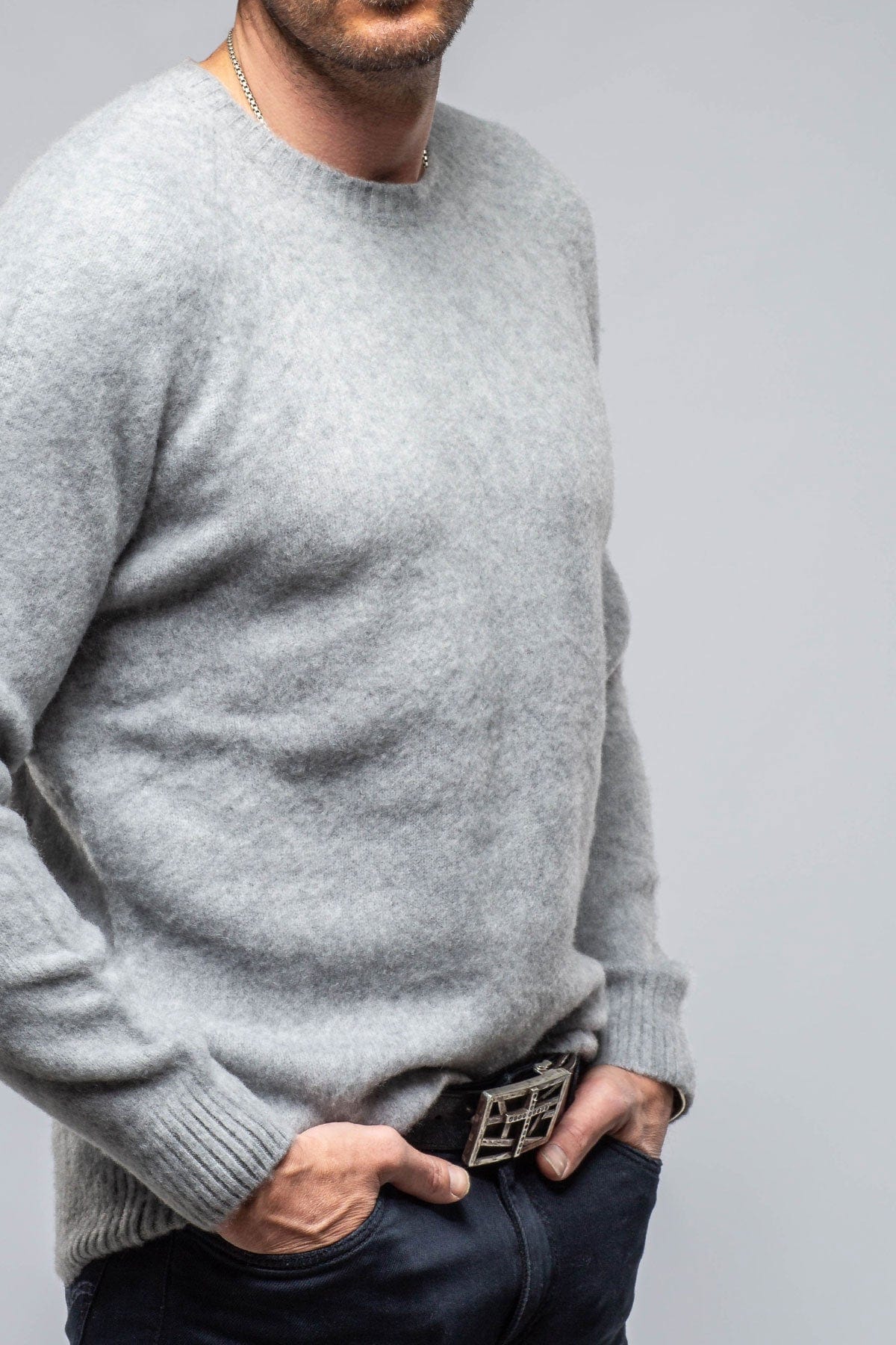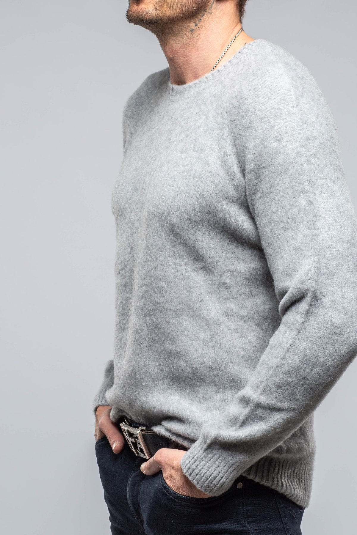 • Henry Crew Neck Cashmere Sweater In Stone Grey